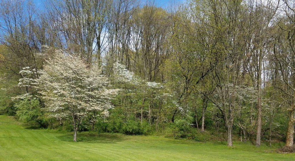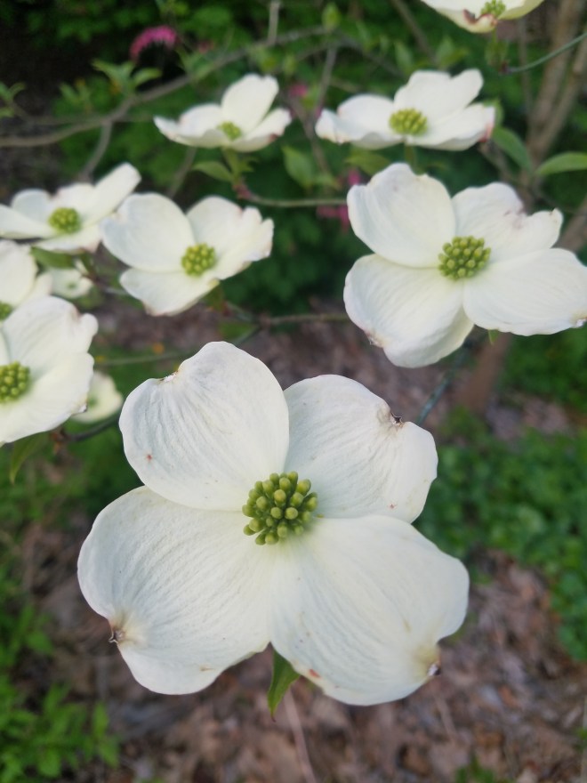May 2020: Cornus florida, common name flowering dogwood